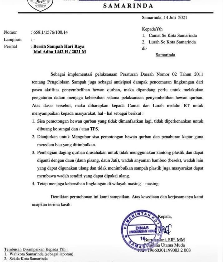 DLH Samarinda Keluarkan Edaran Bersih Sampah Idul Adha