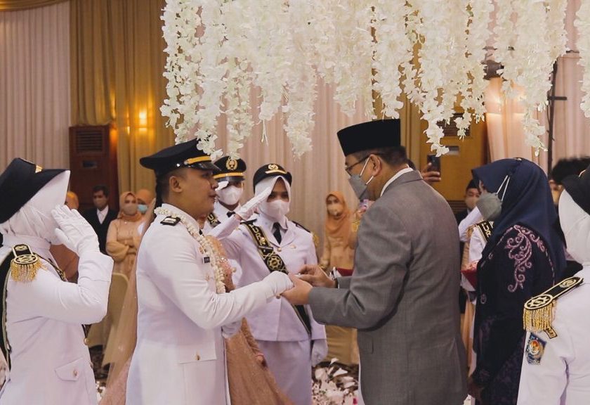 SAMARINDA, Swarakaltim.com – Sekretaris Daerah (Sekda) kota Samarinda selaku ketua Ikatan Keluarga Alumni Pendidikan Tinggi Kepamongprajaan (IKAPTK) kota Samarinda Dr Sugeng Chairuddin bertindak sebagai inspektur upacara (Irup) Prosesi Pernikahan Purna Dharma Asta Bratha pasangan Azi Tri Aprianto SSTP dengan Puput Purnama Dewi.