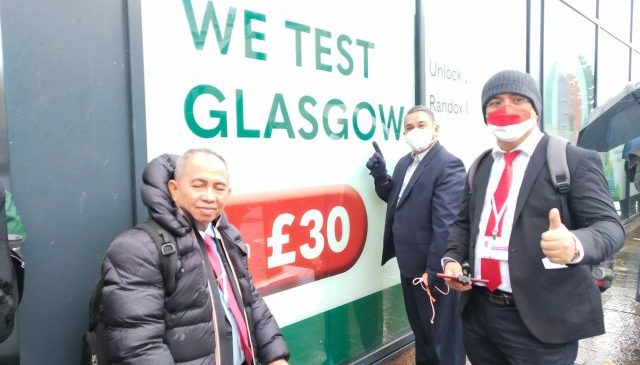 Penerbangan dari Londin cukup melelahkan, namun sebelum kembali ke tanah air, semua rombongan melakukan tes antigen secara mandiri kemudian melaporkan hasilnya ke Panitia COP 26 melalui whatshap, sementara untuk penerbangan kembali ke Indonesia melakukan swab PCR di semua klinik di Glasgow.