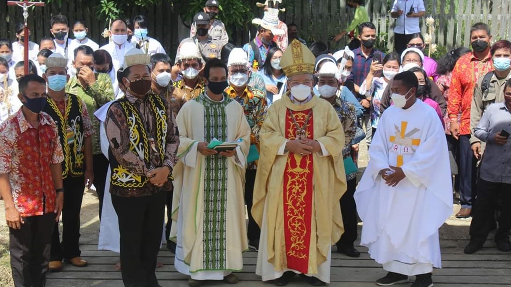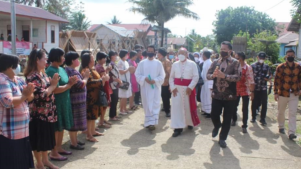 MAHAKAM ULU, Swarakaltim.com – Kedatangan Bupati Kabupaten Mahakam Ulu (Mahulu) Bonifasius Belawan Geh dan Uskup Agung Samarinda Mgr.Yustinus Harjosusanto.MSF, disambut meriah dalam meresmikan penggunaan Gereja Katolik Stasi Santo Stephanus, Datah Bilang Ilir, Minggu (21/11/2021).