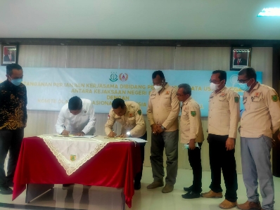 Foto saat Teken MoU, KONI Berau langsung Ketua KONI Al Hamid dan dari Kejari Tanjung Redeb Kepala Kejari Nislianudin.