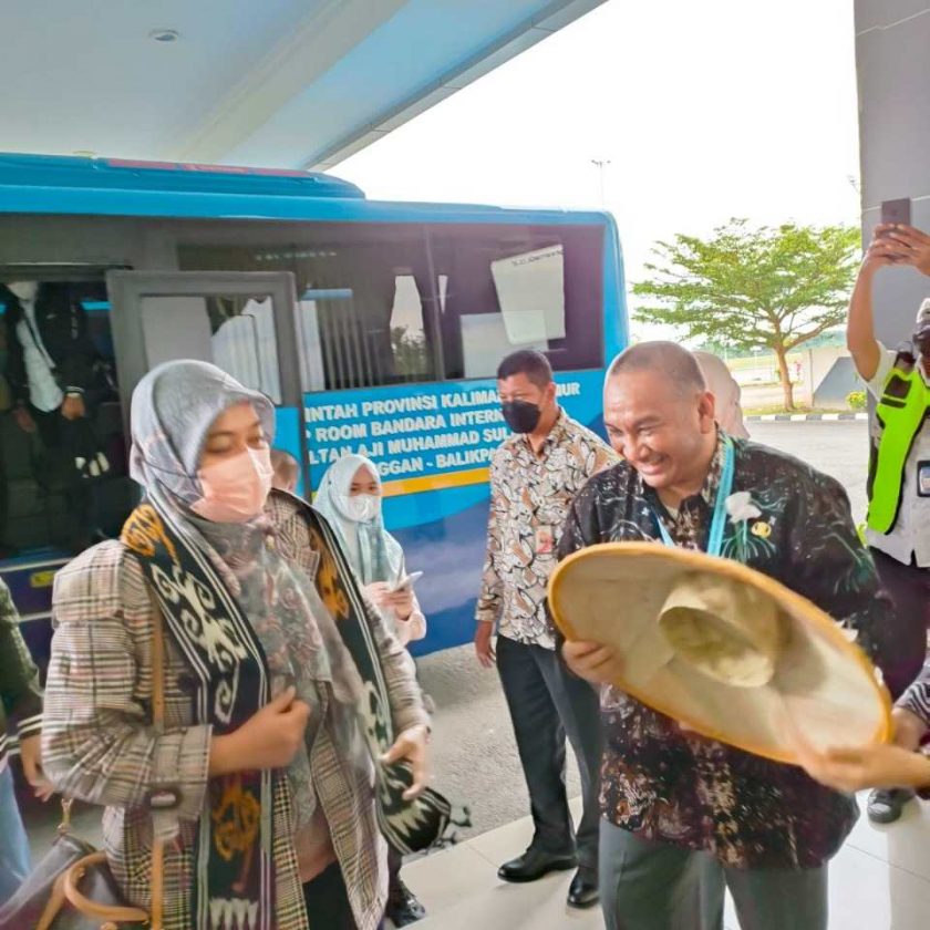 SAMARINDA, Swarakaltim.com – Seraong atau topi khas Kaltim menjadi perhatian Wakil Gubernur (Wagub) Lampung Chusnunia Chalim saat tiba di Bandara Sultan Aji Muhammad Sulaiman – Sepinggan Balikpapan,