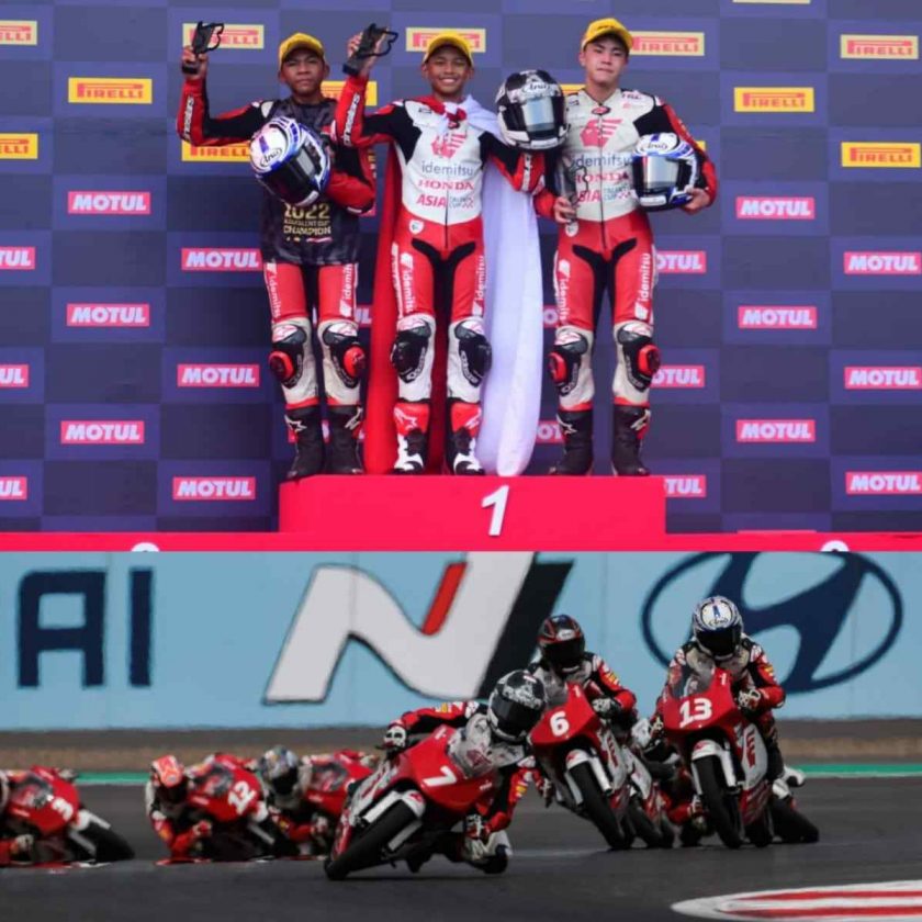 JAKARTA, Swarakaltim.com – Pebalap binaan PT Astra Honda Motor (AHM), Veda Ega Pratama berhasil meraih podium tertinggi dalam dua race pamungkas Idemitsu Asia Talent Cup (IATC) 2022 di sirkuit negeri sendiri yaitu Pertamina Mandalika International Street Circuit, Nusa Tenggara Barat dari tanggal 12 hingga pada tanggal 13 November 2022.