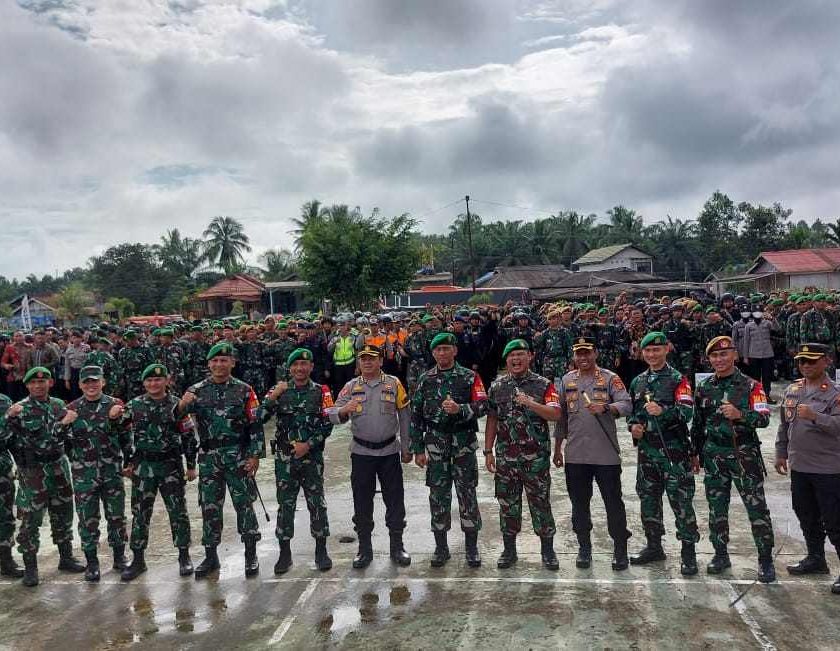BALIKPAPAN, Swarakaltim.com – Ribuan personel gabungan TNI-Polri di Kaltim melaksanakan apel gelar pasukan di Lapangan Taruna Desa Bukit Raya Kecamatan Sepaku Kabupaten Penajam Paser Utara , Selasa (21/2/’23).