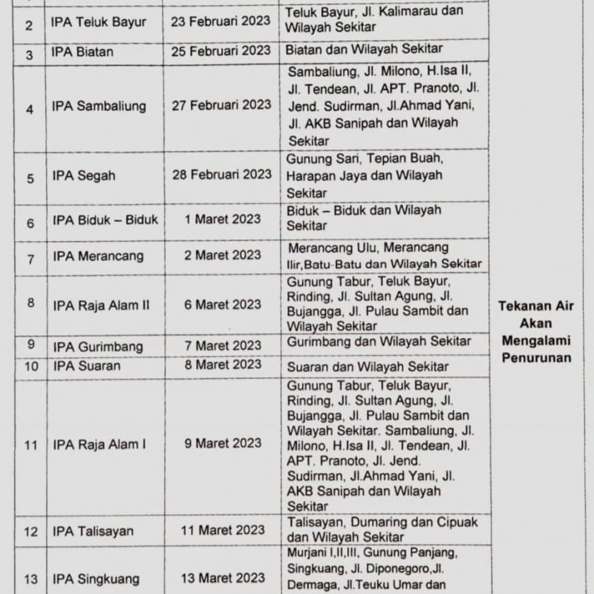 Foto jadwal pengurasan IPA menjelang Ramadhan 1444 H TANJUNG REDEB, Swara Kaltim – Guna menjaga kualitas pelayanan air bersih khususnya saat memasuki bulan Ramadan 1444 H tahun 2023 Masehi, Perusahaan Umum Daerah Air Minum (Perumdam) Batiwakkal menjadwalkan pengurasan rutin secara bertahap disemua wilayah Instalasi Pengolahan Air Minum (IPA) atau WTP (Water Treatment Plant). Pelaksanaan pengurasan […]