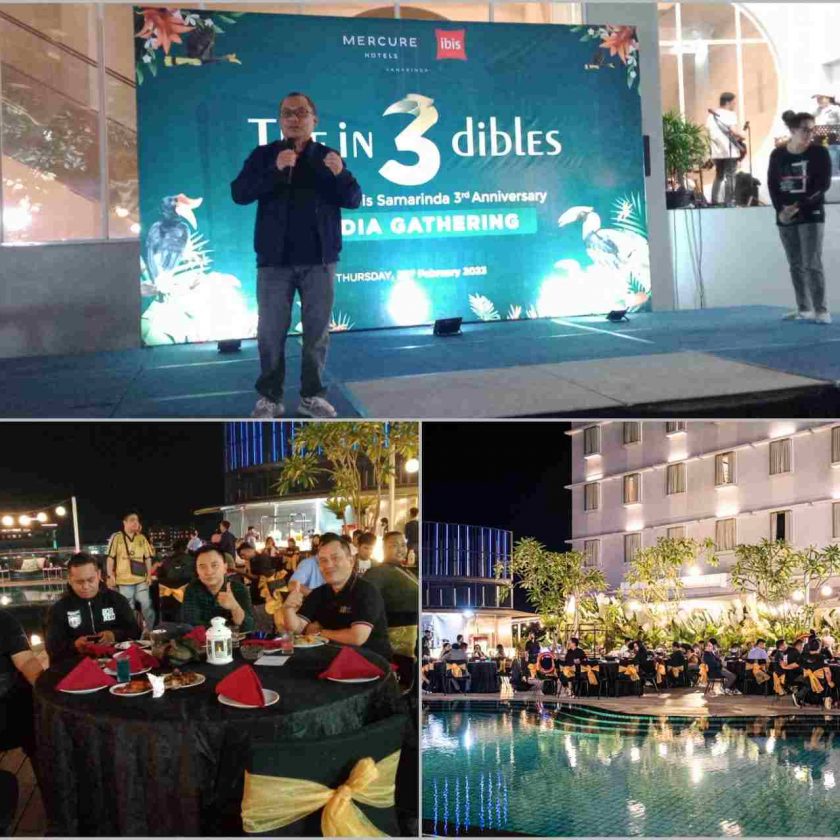 SAMARINDA, Swarakaltim.com – Dalam rangka menjalin tali silaturahmi dengan media, Management Hotel Mercure dan Ibis Samarinda, telah menggelar Media Gathering dan sekaligus termasuk rangkaian kegiatan Anniversary yang Ke-3, di Lantai 5 Hotel Mercure – Ibis Jalan Mulawarman, Kamis (23/2/2023) malam.