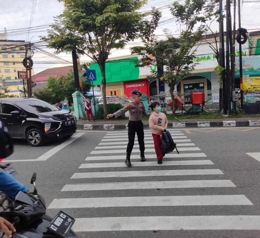 BALIKPAPAN, Swarakaltim.com – Anggota Dit Samapta Polda Kaltim setiap pagi mengatur lalu lintas dan membantu anak sekolah menyebrang jalan untuk memberikan rasa aman di Kota Balikpapan, Kamis (2/3/’23).
