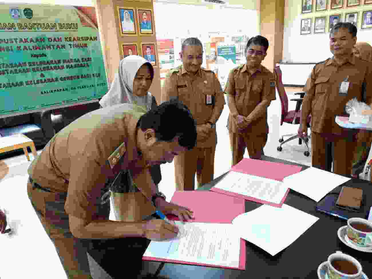 BALIKPAPAN, Swarakaltim.com – Perluas koleksi buku untuk masyarakat, Dinas Perpustakaan dan Kearsipan (DPK) Kaltim serahkan bantuan pustaka siap layan kepada Perpustakaan Kelurahan Marga Sari, Manggar, dan Gunung Sari Ulu, baru-baru ini.