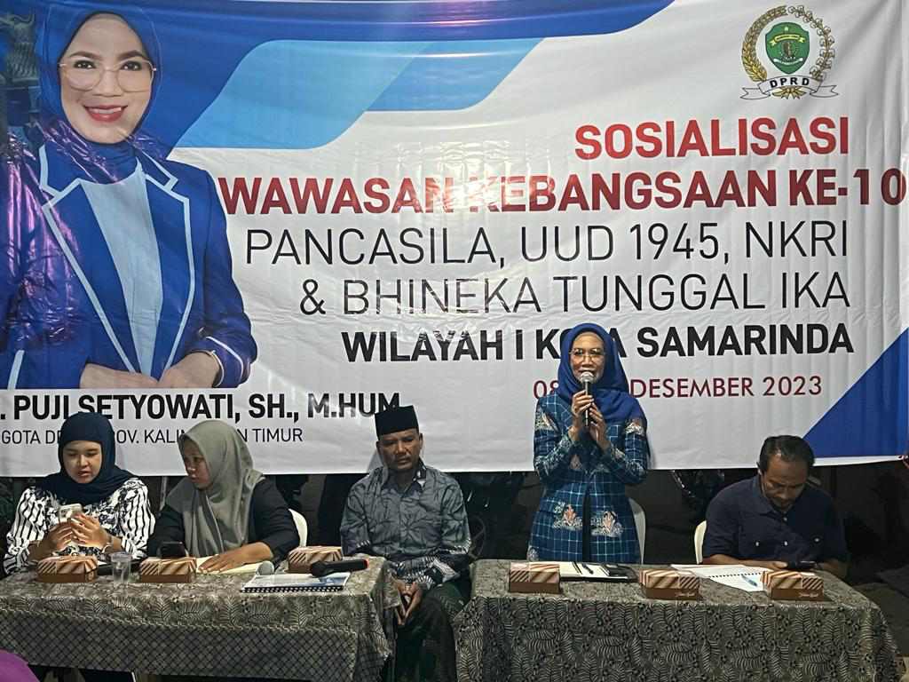 SAMARINDA, Swarakaltim.com – Anggota DPRD Provinsi Kalimantan Timur (Kaltim) Puji Setyowati SH MHum kembali melaksanakan Sosialisasi Wawasan Kebangsaan (Sosbang) yang kali ini dilaksanakan di kelurahan Lok Bahu kecamatan Sungai Kunjang, Sabtu (9/12/2023).