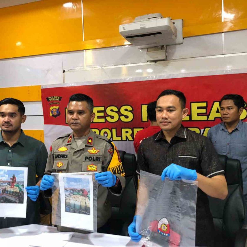 Foto Konferensi pers Polres Berau beserta BB penyalahgunaan BBM illegal.