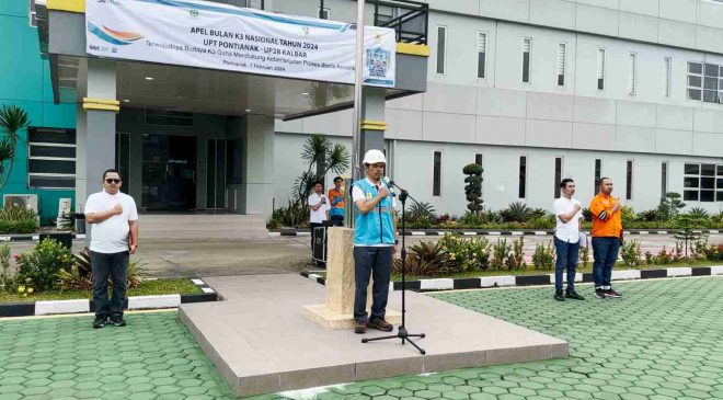PONTIANAK, Swarakaltim.com – PT PLN (Persero) Unit Induk Penyaluran dan Pusat Pengatur Beban (UIP3B) Kalimantan menggelar kegiatan Apel Bulanan K3 dalam rangka memperingati Bulan Keselamatan dan Kesehatan Kerja (K3) Nasional di halaman Kantor PT PLN (Persero) Unit Pelaksana Pengatur Beban Kalimantan Barat (UP2B Kalbar) pada hari Rabu, (8/1)