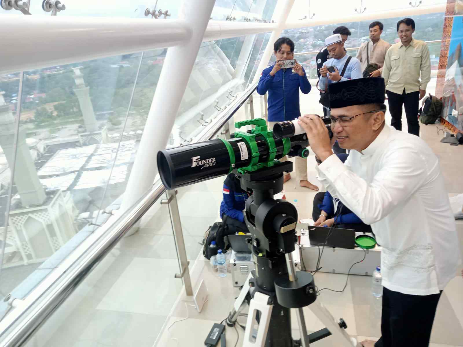 BALIKPAPAN,Swarakaltim.com – Wali Kota Balikpapan Rahmad Masud ikut melakukan ruyatul hilal untuk penetuan 1 syawal 1445 Hijriah di menara pucak Masjid Balikpapan Islamic Center. Pengamatan hilal juga hadiri Kantor Kementerian Agama Balikpapan dengan melibatkan BMKG Balikpapan,Minggu (10/3/2024).