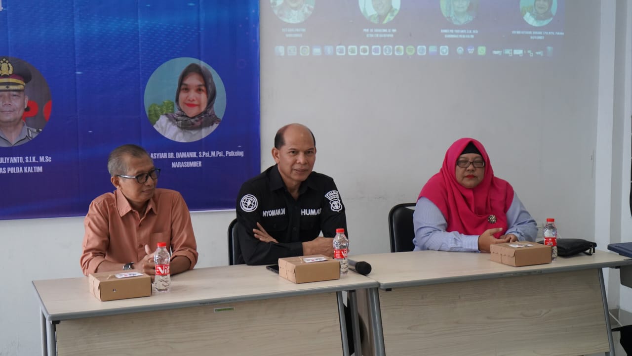 Sosialisasi di pimpin Kasubbid Penmas Bidhumas Polda Kaltim AKBP I Nyoman Wijana S.Ag., S.H., didampingi Wakil Ketua II Bidang Administrasi Umum dan Keuangan STIEPAN Rudy Pudjut Harianto., S.E., M.Si., serta Kepala UPTD PPA Kota Balikpapan Esti Santi Pratiwi dan Psikolog Vivi Nur Aisyah Br. Damanik., S.Psi., M.Psi., selaku narasumber, dan turut serta di hadiri Mahasiswa-Mahasiswi STIE Balikpapan.