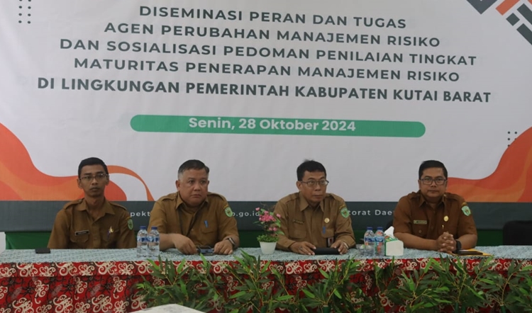 SENDAWAR, Swarakaltim.com – Menindaklanjuti rekomendasi hasil evaluasi Sistem Pengendalian Intern Pemerintah (SPIP) terintegrasi tahun 2023 dari BPKP, Inspektorat Daerah Kabupaten Kutai Barat (Kubar), menggelar kegiatan diseminasi peran dan tugas agen perubahan manajemen risiko sekaligus sosialisasi pedoman penilaian maturitas penerapan manajemen risiko di lingkungan Pemkab Kubar.