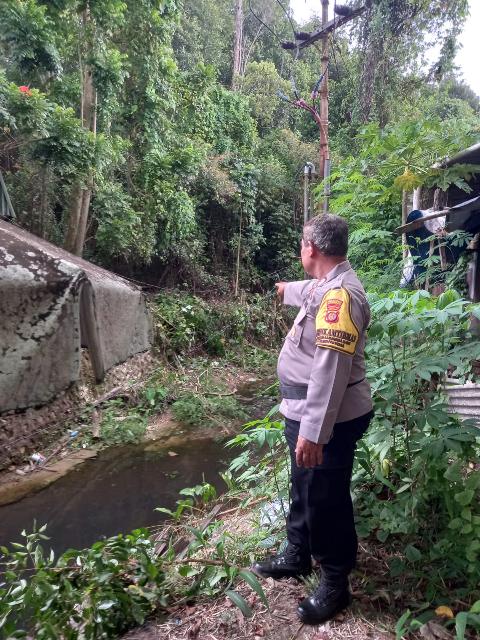 Babinkamtibmas monitor pelaksanaan program bersih-bersih drainase LKM di RT 15