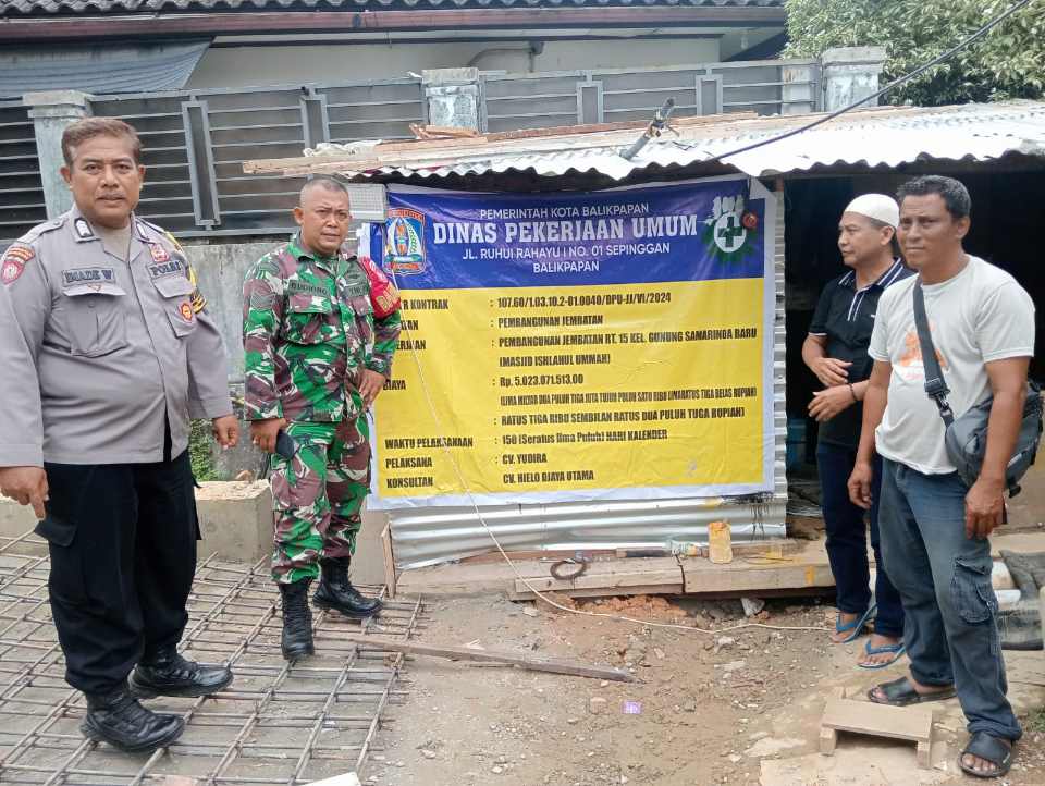Proyek bernomor kontrak 107.60/1.03.10.2-0040/DPU-JJ/VI/2024 dari Dinas Pekerjaan Umum (DPU) Pemerintah Kota Balikpapan menjadi patau langsung Babinsa dan Babinkamtibmas Kelurahan Gunung Samarinda Baru (GSB) Kecamatan Balikpapan Utara Rabu,(20/11/’24).