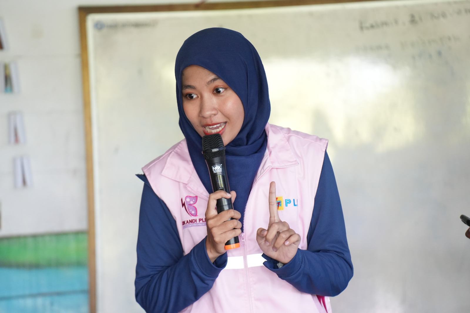 Savira Mawaddah Annur, salah satu Srikandi PLN UPT Palangkaraya sedang melakukan edukasi Ketenagalistrikan kepada anak-anak Petuk Katimpun