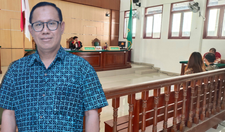 Caption: Momen sidang pembuktian di pengadilan negeri kutai barat, Jumat 10 Januari 2025, menghadirkan sejumlah saksi, diantaranya ketua tim pemenangan paslon nomor urut 2, Devung Paran yang juga Ketua DPRD Mahakam Ulu 2024-2029.