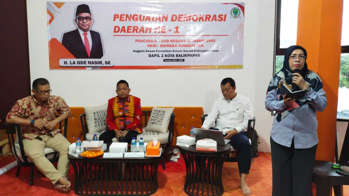 BALIKPAPAN,Swarakaltim.com – Upaya penguatan Demokrasi serta memberikan pemahaman akan nilai -nilai Pancasila, UUD Negara RI 1945 serta bagaimana menjaga keutuhan NKRI (Negara Kesatuan Republik Indonesia) dan memelihara, mempertahankan semangat Bhineka Tunggal Ika di sampaikan H. La Ode Nasir,SE Anggota DPRD Provinsi Kaltim (Kalimantan Timur) di hadapan masyarakat Balikpapan di Gedung LNC Pertokoan Sepinggan Pratama Kecamatan Balikpapan Selatan, Kota Balikpapan Provinsi Kaltim Minggu,(26/1/25).