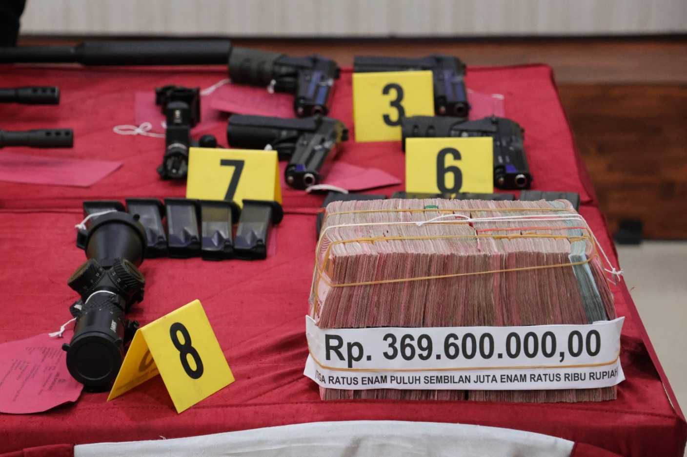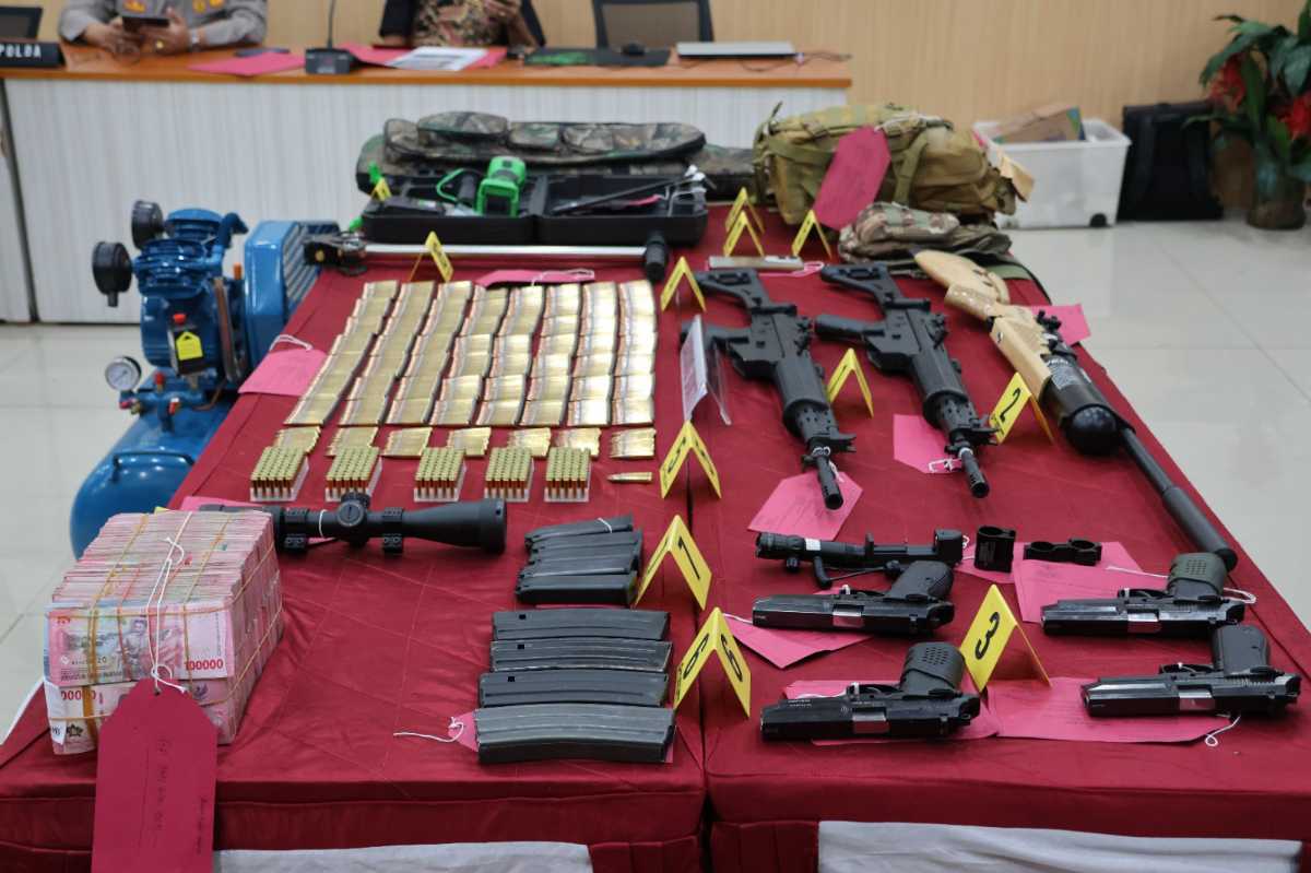 Sejumlah barang bukti yang berhasil diamankan diantara senjata dan amunisi, 2 pucuk senjata api laras panjang yang belum terangkai,