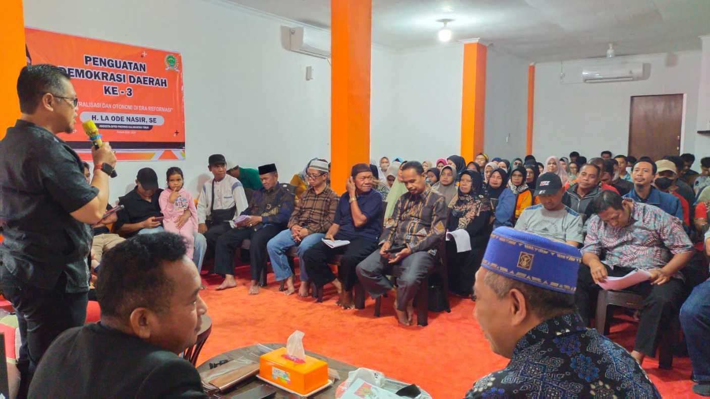 H. Laode Nasir,SE mensosialisasikan Penguatan Demokrasi Daerah ke-3 bertema “Disentralisasi dan Otonomi di Era Reformasi”. Hadir dalam kegiatan ini sejumlah tokoh masyarakat dan masyarakat setempat kota Balikpapan.