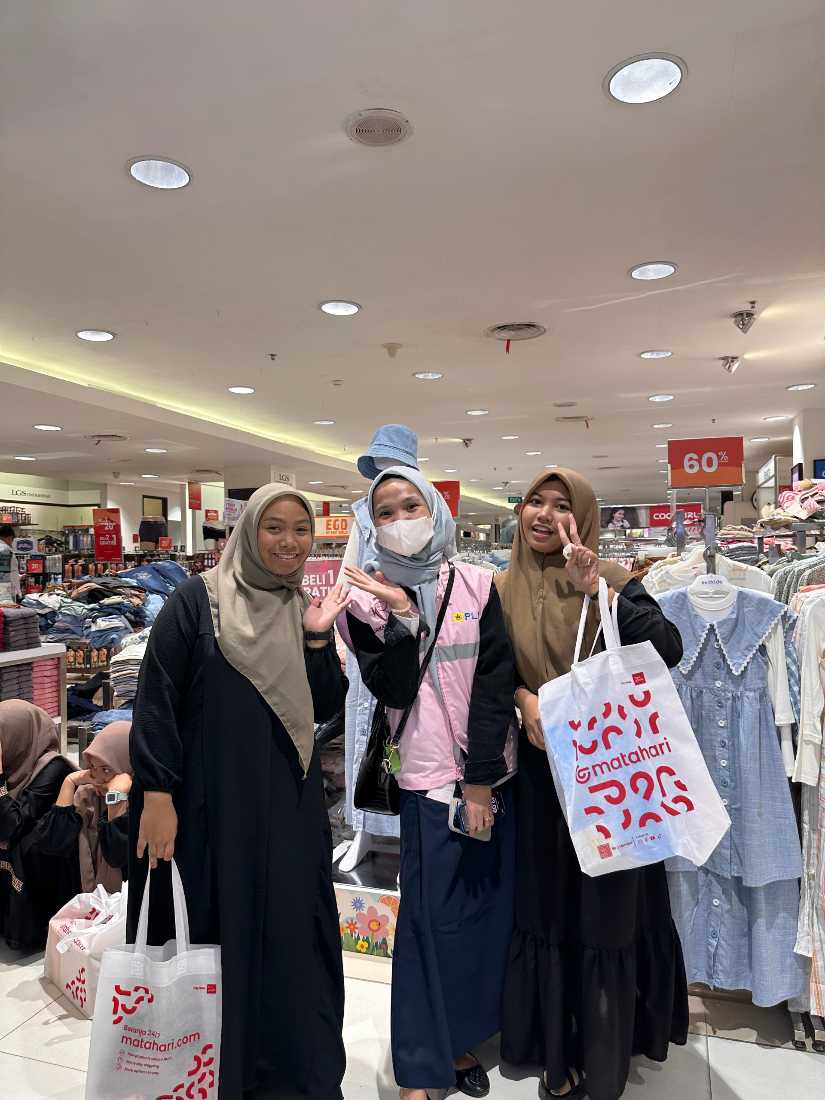 Tampak ekspresi ceria setelah berbelanja baju dan berfoto dengan salah satu Srikandi PLN UP2B Kalbar.