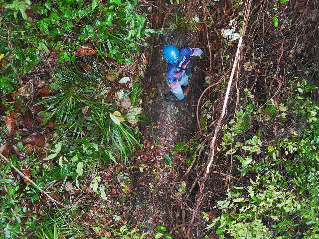 Petugas melakukan inspeksi rutin ROW (Right of Way) pada saluran transmisi tegangan tinggi untuk menjaga jarak bebas minimum antara tanaman dan konduktor sesuai Permen ESDM No.13 Tahun 2021, serta pembersihan vegetasi & benda lain yang berpotensi dapat mengakibatkan kegagalan isolasi udara ( _Ground Clearance_ ) disekitar kawat penghantar guna mencegah potensi gangguan sistem kelistrikan.