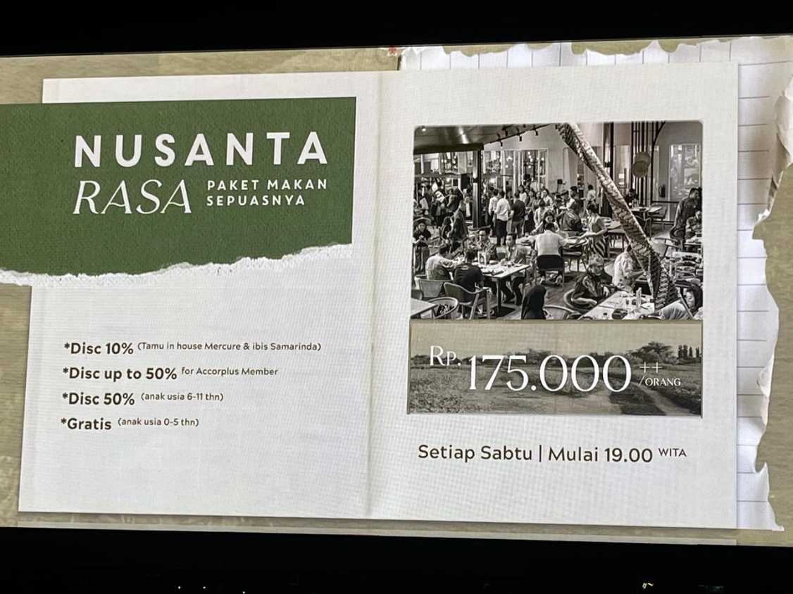 Diperkenalkan oleh Estetika Putri (Marketing Communication Manager Mercure dan Ibis Hotel Samarinda) bersama Devi Yolanda dari tim F&B Marketing, “Nusantara Rasa” merupakan inovasi terbaru dari konsep buffet yang sebelumnya pernah diusung Kecapi Café.