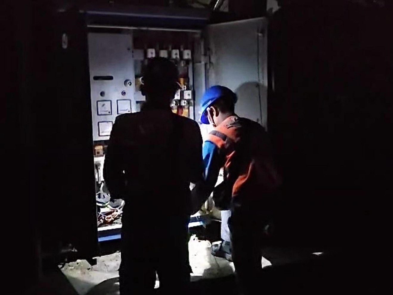 Petugas PLN memastikan jaringan distribusi aman untuk pemulihan masuknya tegangan listrik.