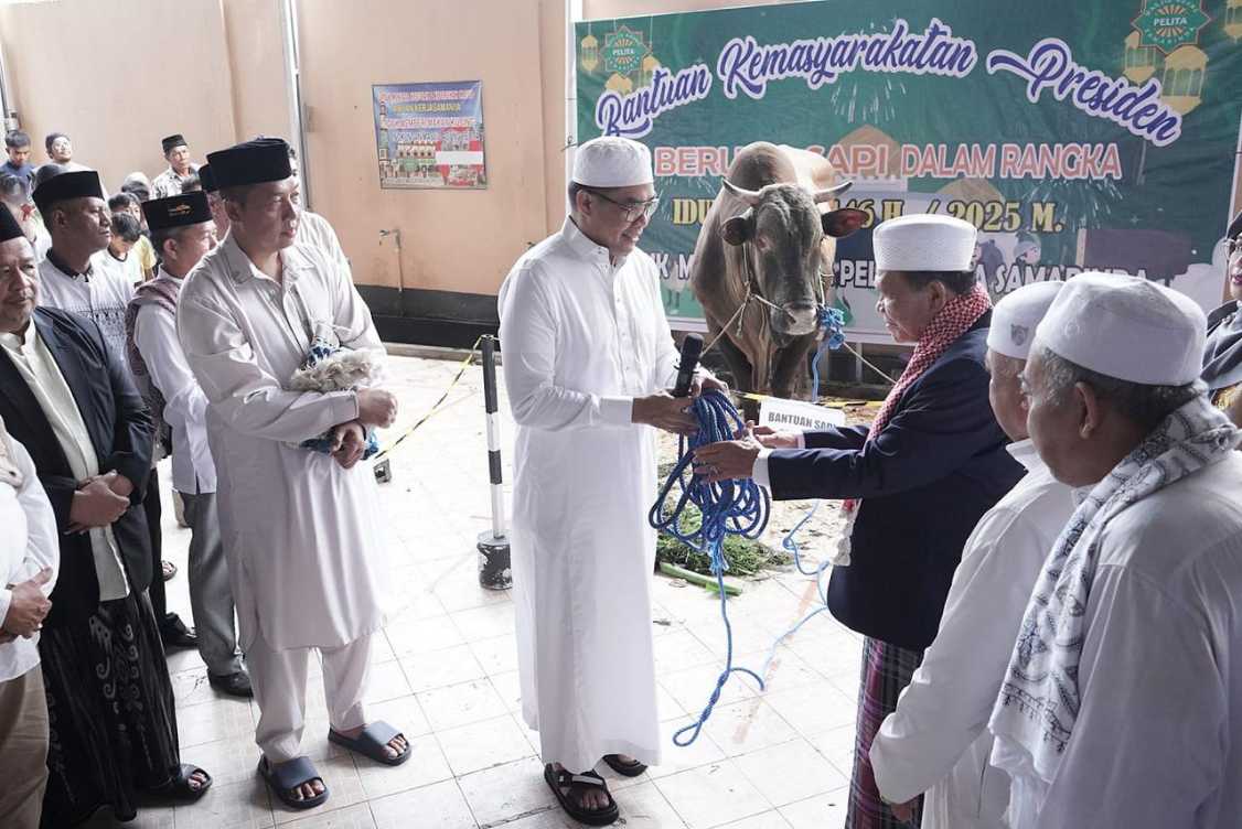 SAMARINDA, Swarakaltim.com – Wali Kota Samarinda, Andi Harun, menyerahkan secara simbolis satu ekor sapi qurban dari Presiden Republik Indonesia, Prabowo Subianto, kepada panitia jbadah Qurban Masjid Agung Pelita Samarinda, Jumat (6/6/2025) pagi.