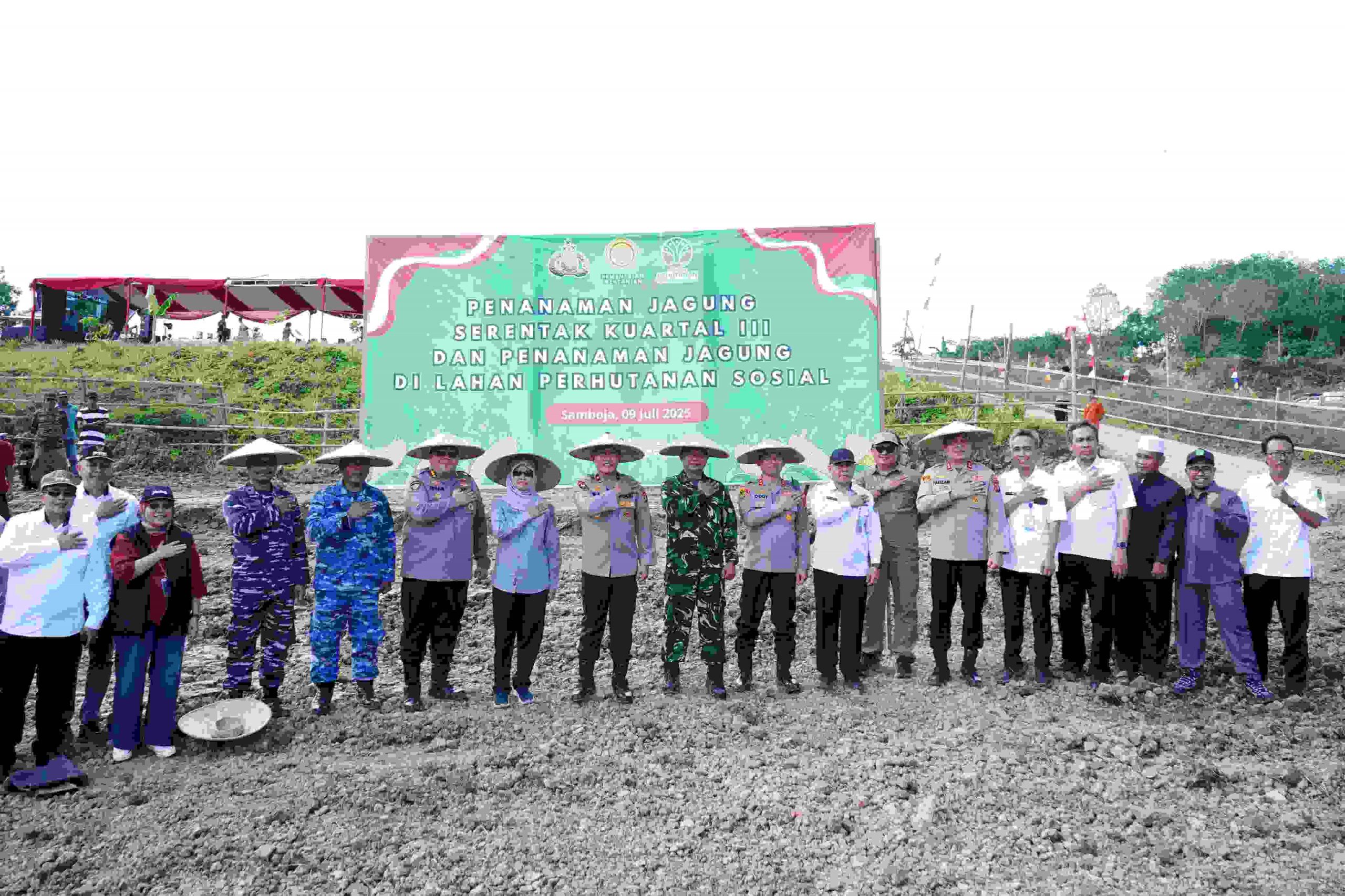KUKAR,Swarakaltim.com – Polda Kalimantan Timur (Kaltim) menunjukkan komitmennya dalam mendukung program Asta Cita Presiden RI khususnya pada bidang ketahanan pangan, dengan menggelar kegiatan Penanaman Jagung Serentak Kuartal III serta penanaman di lahan perhutanan sosial. Kegiatan ini berlangsung di kawasan lahan bekas tambang milik PT.Berau Coal Energy dan PT.Multi Harapan Utama (MHU), berlokasi di Dusun Lampe, Desa Sungai Seluang, Kecamatan Samboja, Kabupaten Kutai Kartanegara (Kukar) pada Rabu (9/7/25).