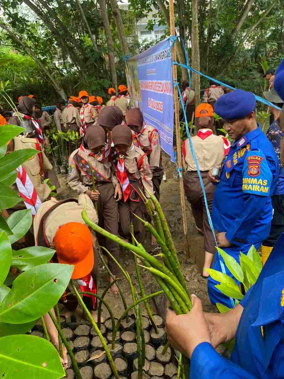 Sebanyak 500 bibit mangrove ditanam dan 300 bibit disemai sebagai bentuk komitmen bersama dalam menjaga ekosistem pesisir. Kegiatan juga diisi dengan sesi edukasi ekosistem mangrove, termasuk pengenalan jenis-jenis mangrove, manfaat ekologisnya, dan tanya jawab interaktif antara pelajar dan personel Polairud.