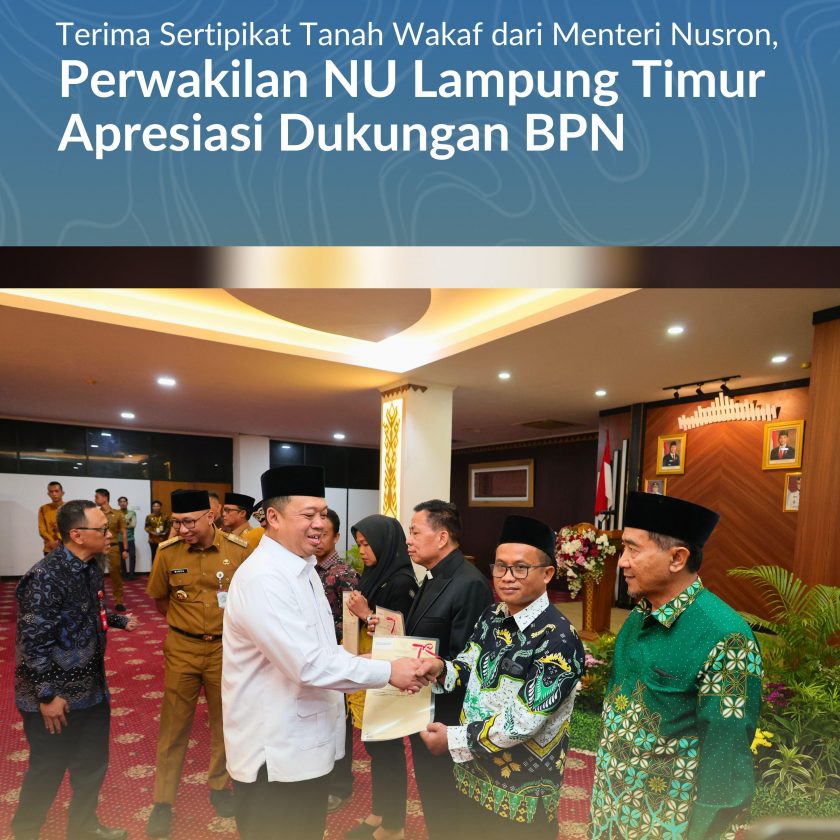 Terima Sertipikat Tanah Wakaf dari Menteri Nusron, Perwakilan NU Lampung Timur Apresiasi Dukungan BPN