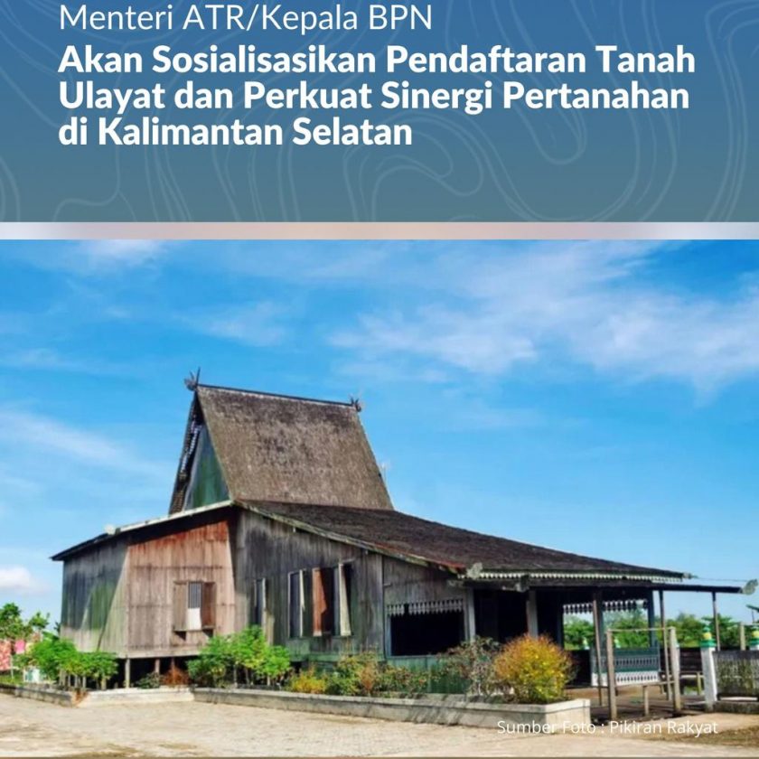 Menteri ATR/Kepala BPN Akan Sosialisasikan Pendaftaran Tanah Ulayat dan Perkuat Sinergi Pertanahan di Kalimantan Selatan