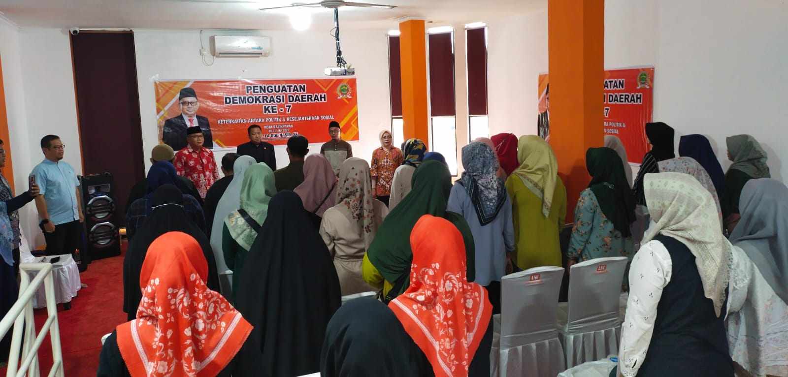 Penguatan Demokrasi Daerah ke 7 keterkaitan antar politik dan kesejahteraan sosial di aula lantai II kantor La Ode Nasir Center Ruko Sepinggan Pratama Kelurahan Sepinggan, Kecamatan Balikpapan Selatan, Provinsi Kaltim Sabtu,(2/8/’25) siang.