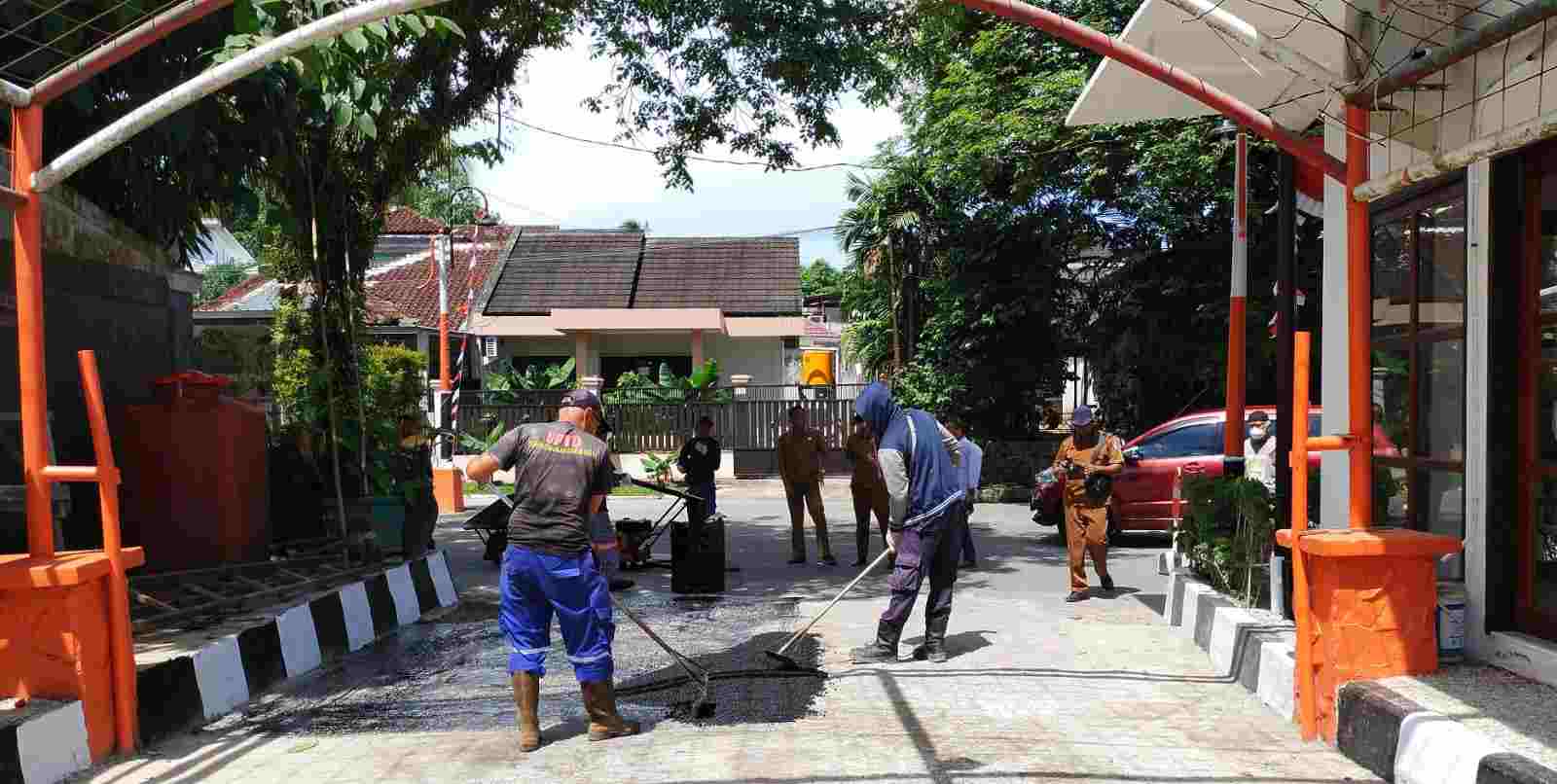 Pengerjaan pemeliharaan jalan dengan penambalan pengaspalan fasilitas umum dimulai pukul 13.30 WITA. Sejumlah pekerja dari DPU di arahkan langsung oleh Kepala lapangan perawat jalan DPU dan didampingi pihak Trantib Kecamatan Balikpapan Utara Yudo dan Agus.