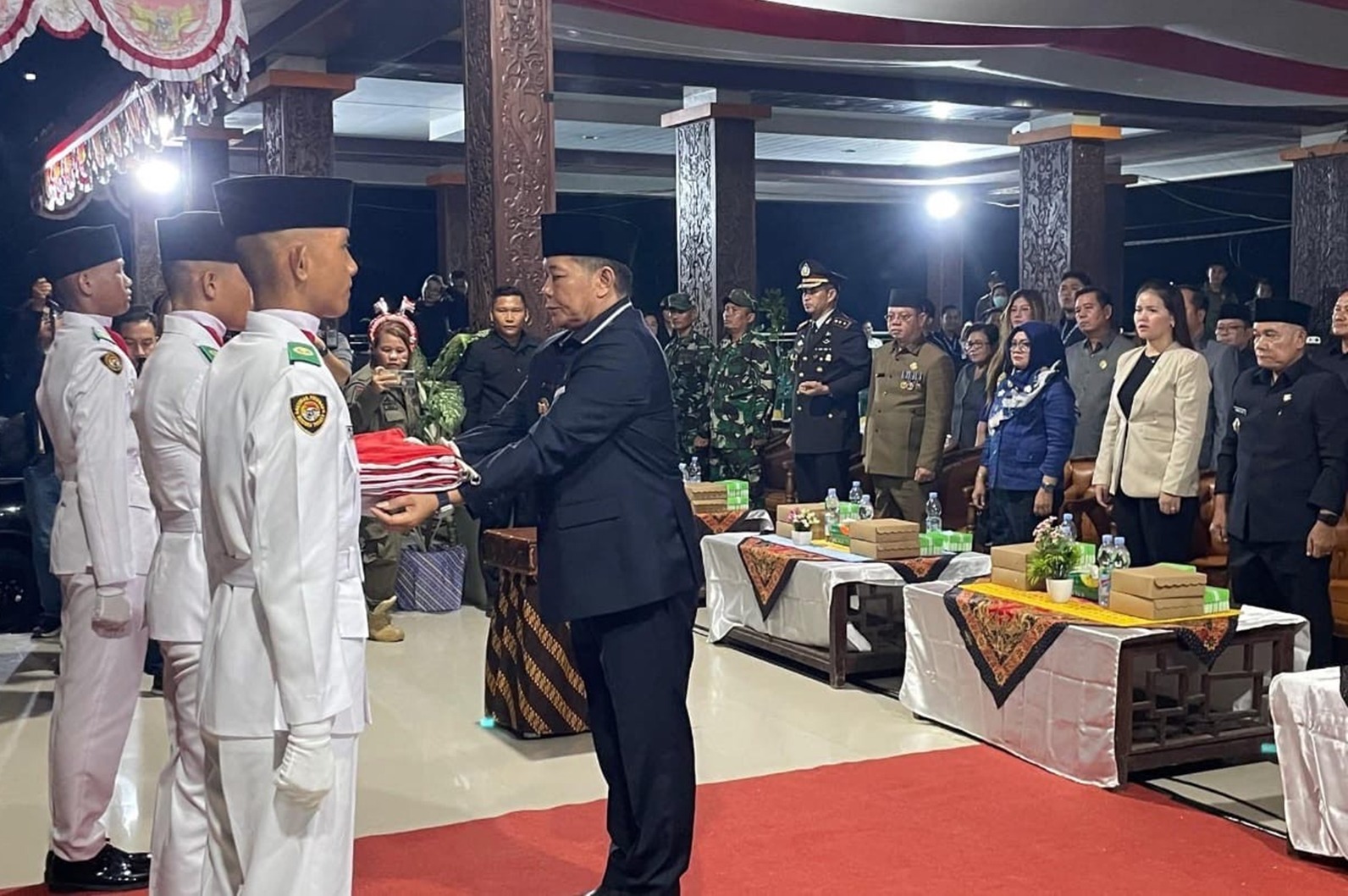 Prosesi sakral tersebut diawali dengan penyerahan Bendera Merah Putih dari Bupati Bonifasius Belawan Geh, kepada pasukan Paskibraka. Sebanyak 23 anggota Paskibra kemudian melaksanakan pelipatan bendera dengan penuh khidmat, disaksikan para tamu undangan, jajaran Forkopimda, serta ribuan masyarakat yang hadir.