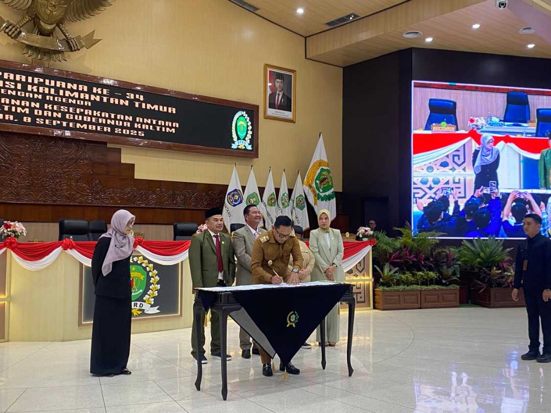 SAMARINDA, Swarakaltim.com – DPRD Provinsi Kalimantan Timur (Kaltim) bersama Pemerintah Provinsi (Pemprov) Kaltim menyepakati Rancangan Kebijakan Umum Anggaran (KUA) dan Rancangan Prioritas Plafon Anggaran Sementara (PPAS) Tahun Anggaran 2026 dalam Rapat Paripurna Ke-34, Senin (8/9/2025) di Gedung Utama (B) DPRD Kaltim.