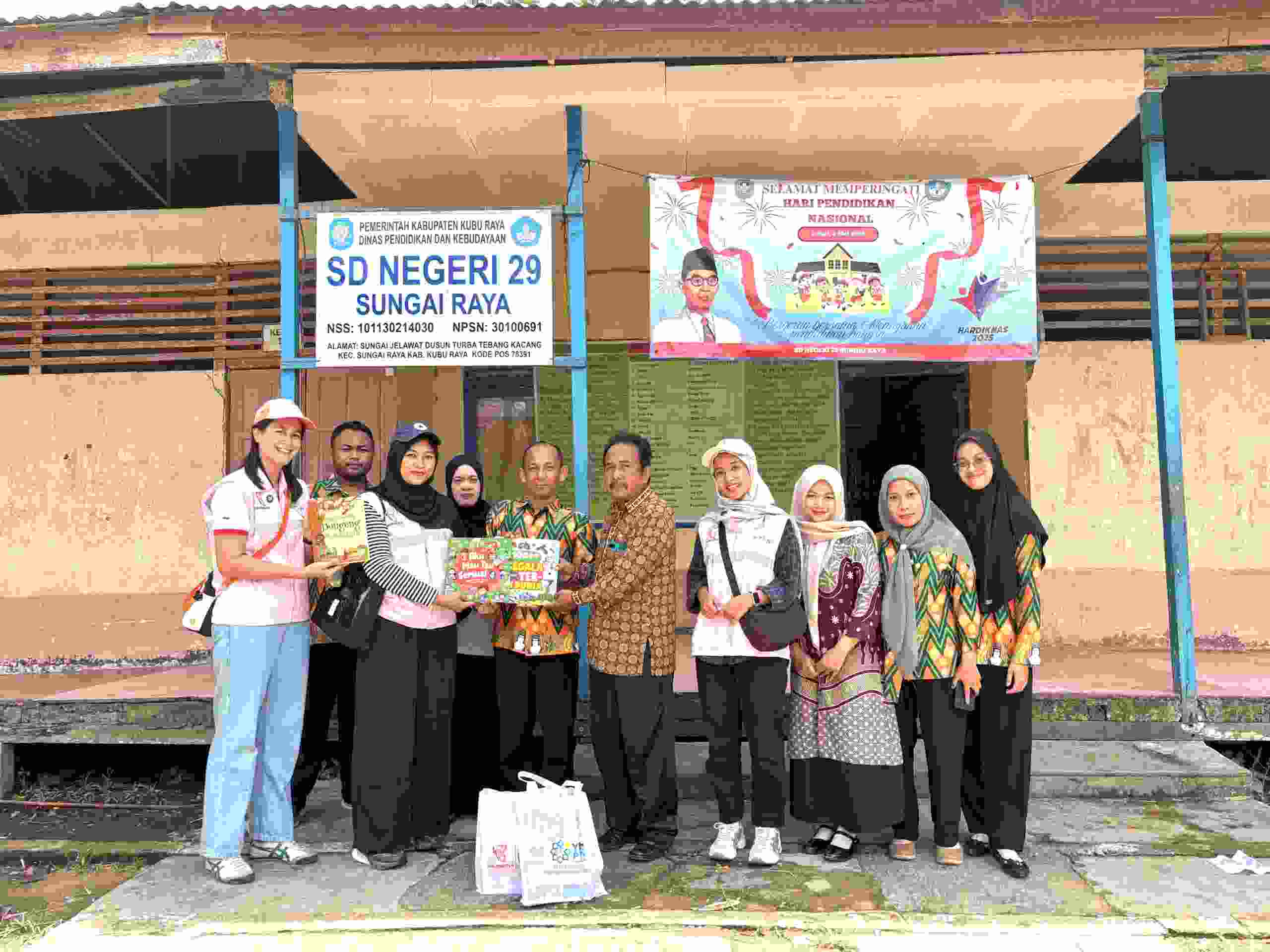 Perwakilan PLN UP2B Kalbar bersama Srikandi PLN menyerahkan bantuan buku bacaan dan paket literasi ke SDN 29 Sungai Raya, Kubu Raya