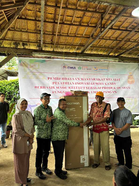 Sebagai bentuk dukungan nyata, pada akhir pelatihan dilakukan penyerahan peralatan produksi gummy candy kepada kelompkok UMMK Kelompok Tani Hutan Trigona Zwageri BRJ. Bantuan ini diharapkan menjadi modal awal bagi UMKM untuk segera memproduksi dan memasarkan produk inovatif berbasis madu kelulut tersebut.(*)