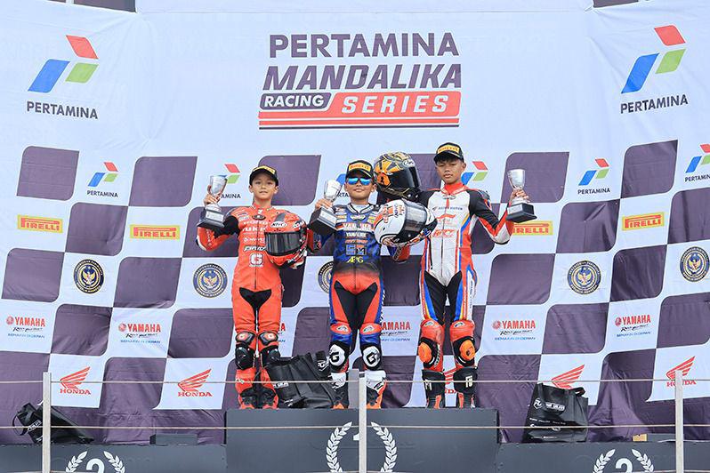 Resky YH (kanan) pembalap muda ART Yogyakarta berhasil melengkapi kemenangan tim ART dengan finish di posisi ke 3 kelas Junior NS 150cc pada gelaran MRS ronde ke 4 (20-21/09).