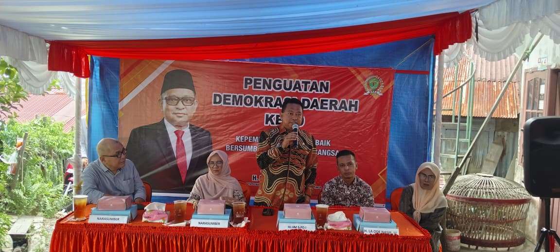 H.La Ode Nasir pada sosialisasi Sosperda ini kemudian men Jelaskan, bahwa tantangan Indonesia tidak hanya hadir dari dalam negeri, namun juga situasi politik global. Oleh karena itu, diperlukan komitmen kuat untuk memperkuat demokrasi dan penegakan keadilan hukum dengan menyasar pada kelompok yang rentan.