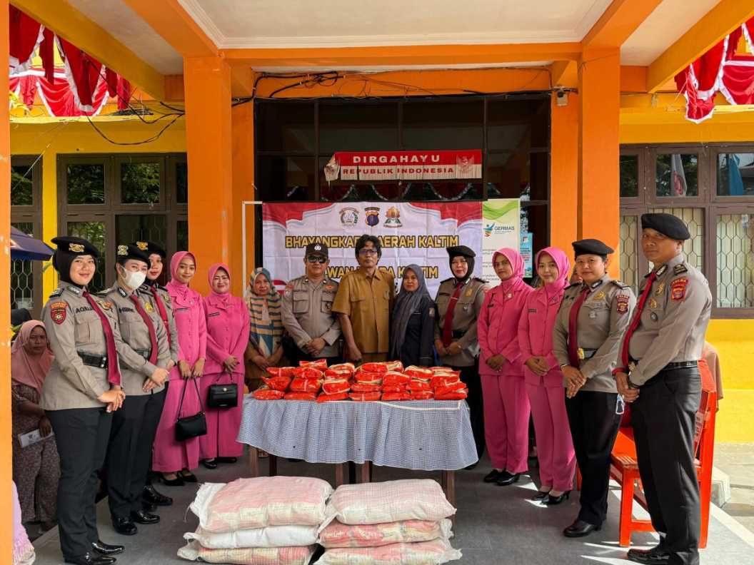 Polwan dan Bhayangkari Polda Kaltim Gelar Aksi Sosial “Berbagi Gula” untuk Warga Baru Tengah