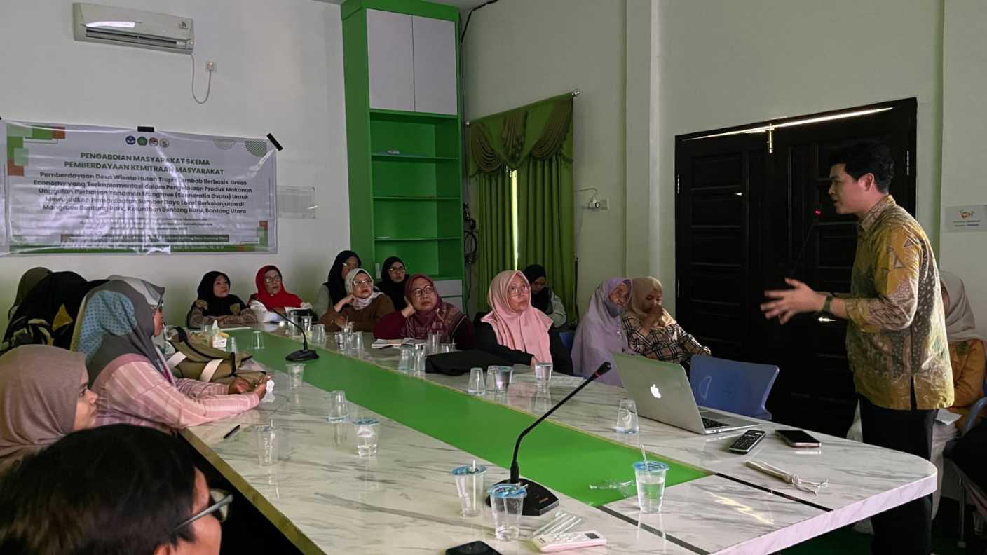 Kegiatan ini berada di bawah payung program “Pemberdayaan Desa Wisata Hutan Tropis Lembab Berbasis Green Economy yang Terimplementasi dalam Pengelolaan Produk Makanan Unggulan Berbahan Tanaman Mangrove (Sonneratia ovata) untuk Mewujudkan Pemanfaatan Sumber Daya Lokal Berkelanjutan di Mangrove Bontang Park, Kelurahan Bontang Baru, Bontang Utara.” Fokusnya adalah mengakselerasi UMKM wisata agar mampu menghadirkan produk yang menarik, aman, patuh regulasi, dan berkelanjutan, sekaligus menguatkan identitas destinasi melalui pemanfaatan sumber daya lokal secara bertanggung jawab.