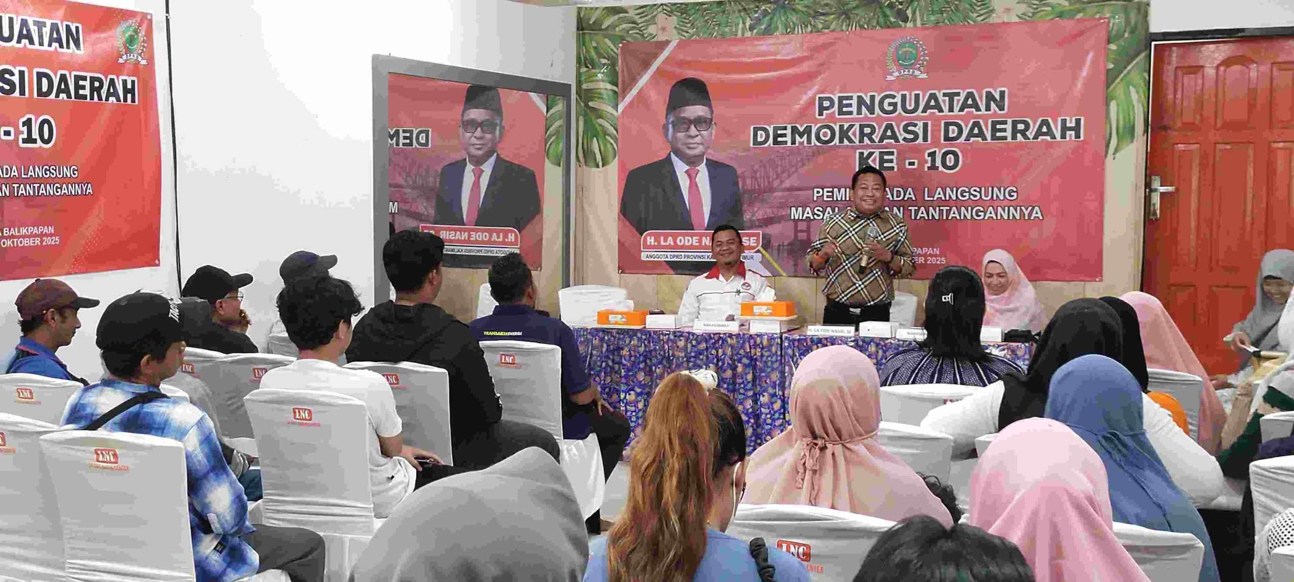 Penguatan Demokrasi Daerah ke 10 mengambil tema “Pemilukada Lansung Dan Tantangannya”di Kantor Sekretariat Halte sedekah LNC (La Ode Nasir Center) Jl. dr. Sutomo Kelurahan Karang Rejo Kelurahan, Kecamatan Balikpapan Tengah Provinsi Kaltim Rabu,(22/10/’25) siang.