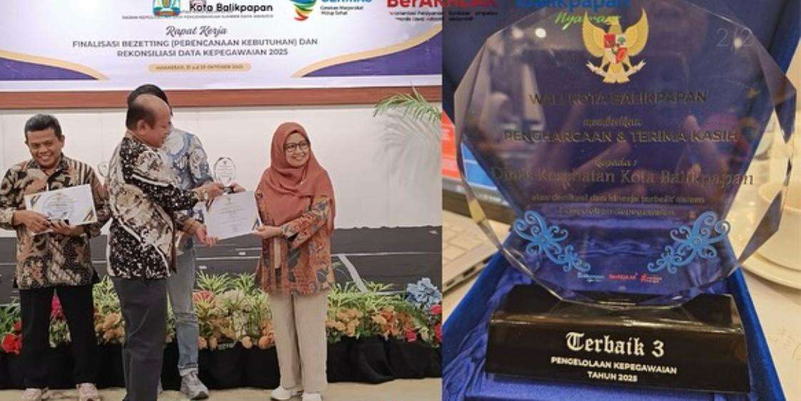 BALIKPAPAN,Swarakaltim.com.                          Setelah meraih penghargaan Terbaik III dalam Pengelolaan Kepegawaian Tahun 2025, Dinas Kesehatan (Dinkes) Kota Balikpapan, Provinsi Kalimantan Timur (Kaltim) bertekad melangkah lebih jauh. Penghargaan yang diberikan Wali Kota Balikpapan, Rahmad Mas’ud, pada Rapat Kerja Finalisasi Bezetting dan Rekonsiliasi Data Kepegawaian 2025 di Makassar, menjadi momentum Dinkes mempercepat transformasi digital kepegawaian.