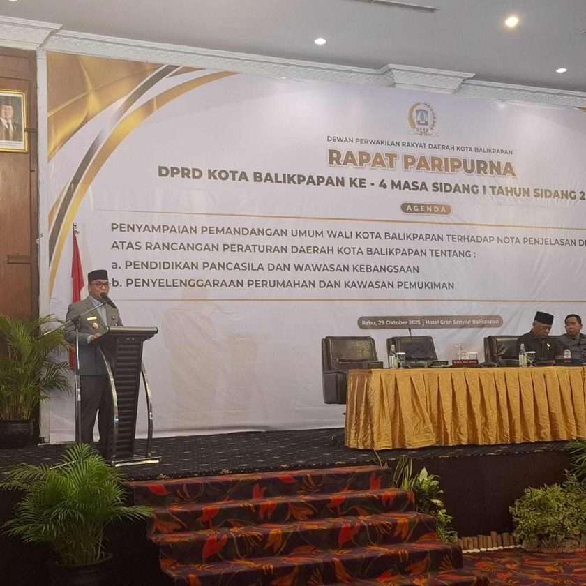 BALIKPAPAN,Swarakaltim.com. Wakil Wali Kota Balikpapan, Bagus Susetyo, saat membacakan pandangan umum Wali Kota terhadap Nota Penjelasan Dewan Perwakilan Rakyat Daerah (DPRD) atas dua Rancangan Peraturan Daerah (Raperda), Rabu (29/10/2025), di Hotel Grand Senyiur Balikpapan. Dalam paripurna tersebut, Wakil Wali Kota menegaskan komitmennya […]