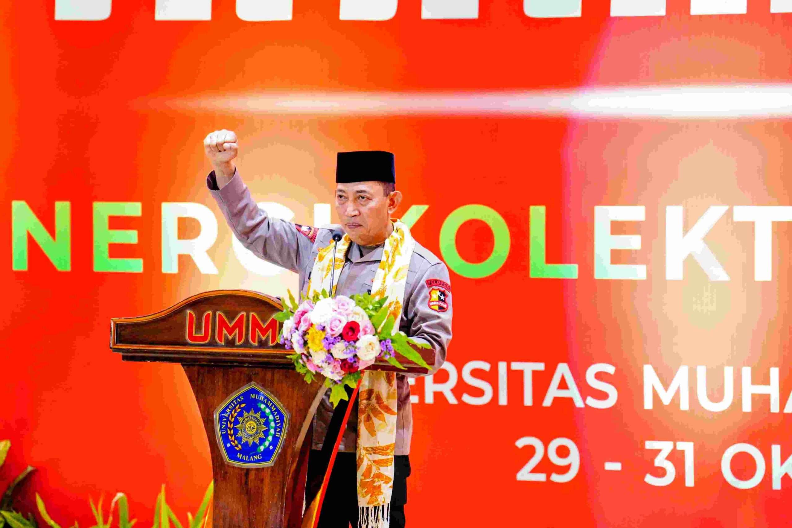 JATIM,Swarakaltim.com. Kapolri Jenderal Listyo Sigit Prabowo memberikan sambutan sekaligus menutup acara Tanwir ke-XXXIII IMM di UMM Dome, Malang, Jawa Timur (Jatim), Jumat, 31 Oktober 2025. Dalam kesempatan ini, Sigit mengajak seluruh peserta untuk berkontribusi dalam rangka mendukung program Pemerintah Indonesia.