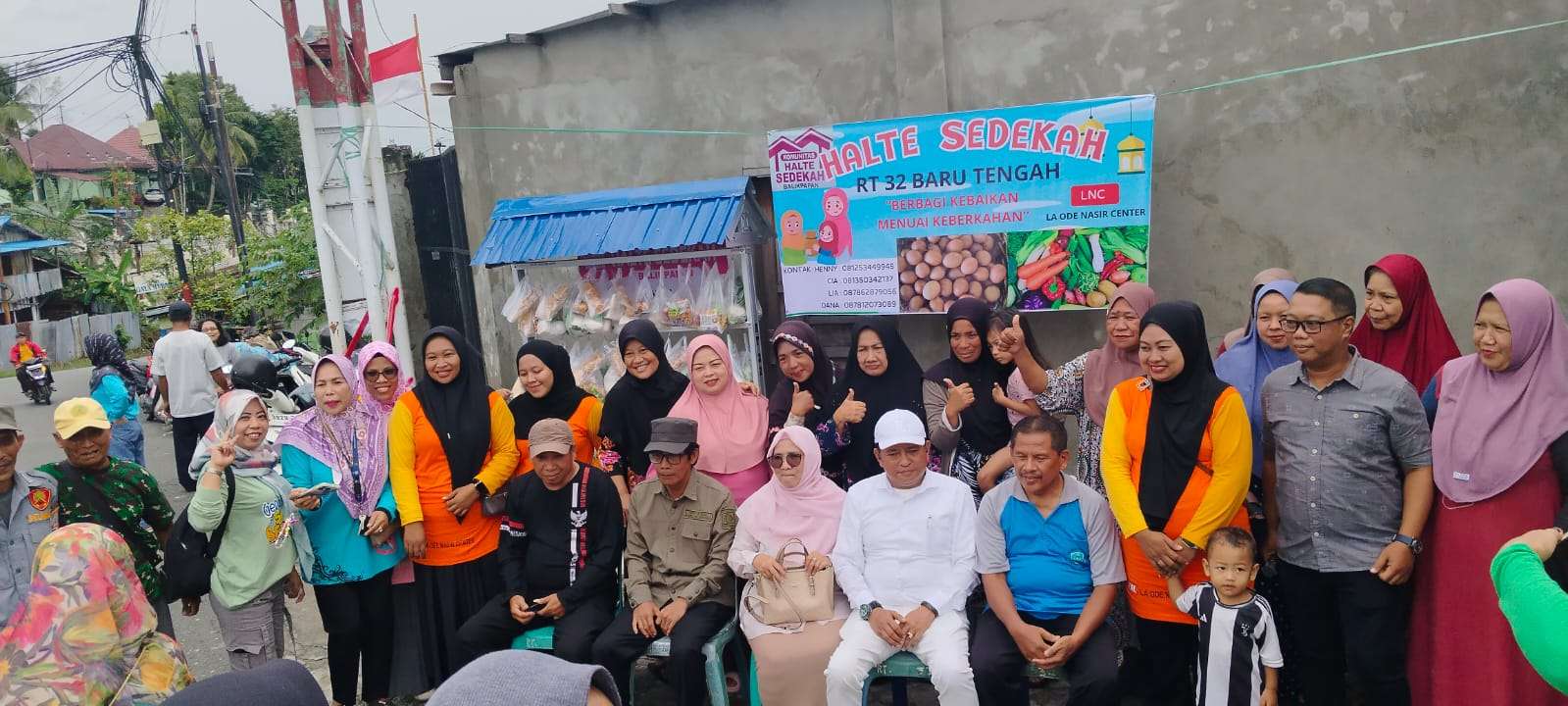 Paling tengah Hj.Iim Rahman di Halte Sedekah bersama warga
