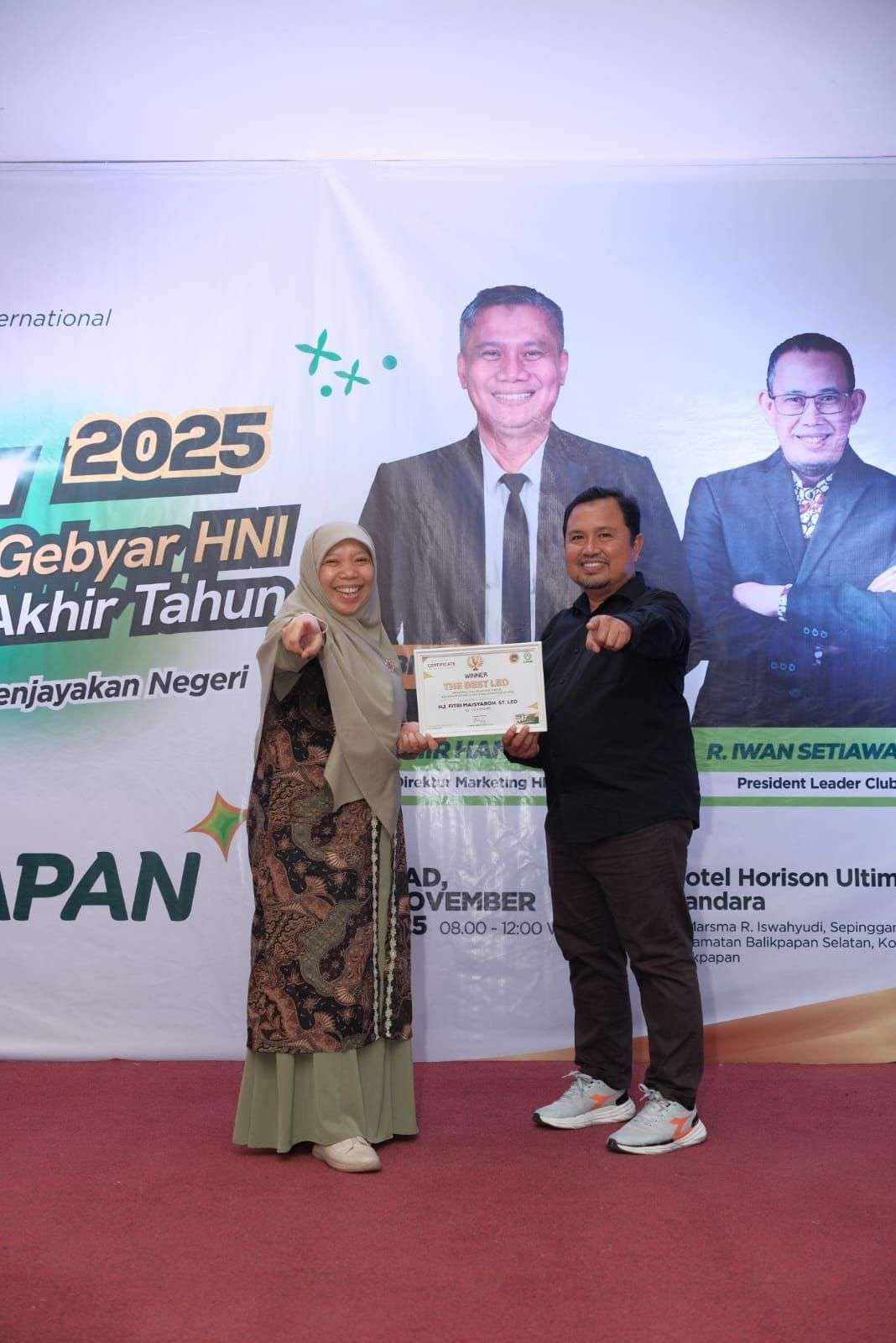BALIKPAPAN,Swarakaltim.com. Hj.Fitri Maisyaroh. ST,LED menerima penghargaan Winner The Best LED Loyal Executive Director untuk Regional Kalimantan Timur, Kalimantan Selatan dan Kalimantan Utara dari HNI (Halal Network Internasional) di event Gebyar Akhir Tahun 2025 yang di gelar di 34 Kota di seluruh Indonesia. Salah satunya di Kota Balikpapan yang diselenggarakan